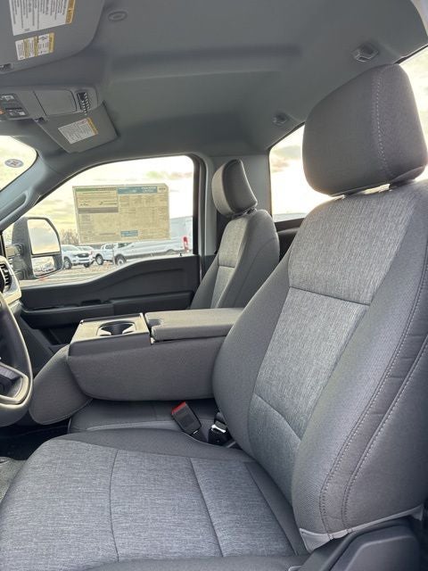 This F-350 also comes equipped with a TRAILER BRAKE CONTROLLER, UPFITTER SWITCHES (6), and 410 AMP DUAL ALTERNATORS, ensuring you have the power and control you need to tackle any job. The MEDIUM DARK SLATE, CLOTH 40/20/40 SPLIT BENCH SEAT provides comfort and convenience, with a center armrest, cupholder, storage, and driver's side manual lumbar support.